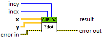 result : float, the resulting dot product, which is 0.0 if number of elements in the vectors x and y is <= 0.
