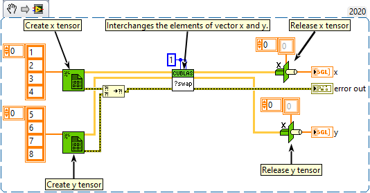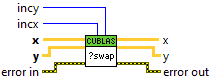 This function interchanges the elements of vector x and y. Type : polymorphic.
