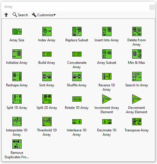 | Decimate 1D Array | Divides the elements of array into the output arrays, placing elements into the outputs successively. | |