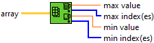 Returns the maximum and minimum values found in array, along with the indexes for each value. |