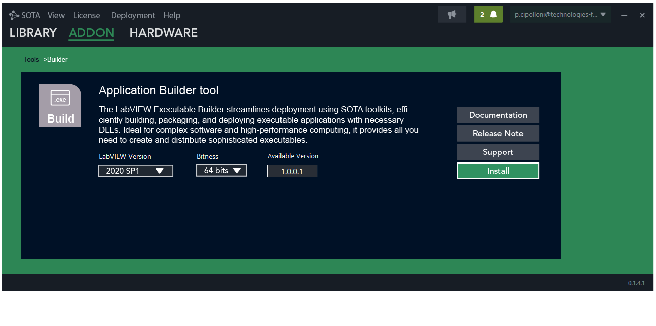 - Download and openΒ SOTA. In the menu, selectΒ Addon, then click onΒ ToolsΒ and choose theΒ BuilderΒ tool. Then download the version of theΒ BuilderΒ tool compatible with your LabVIEW installation.