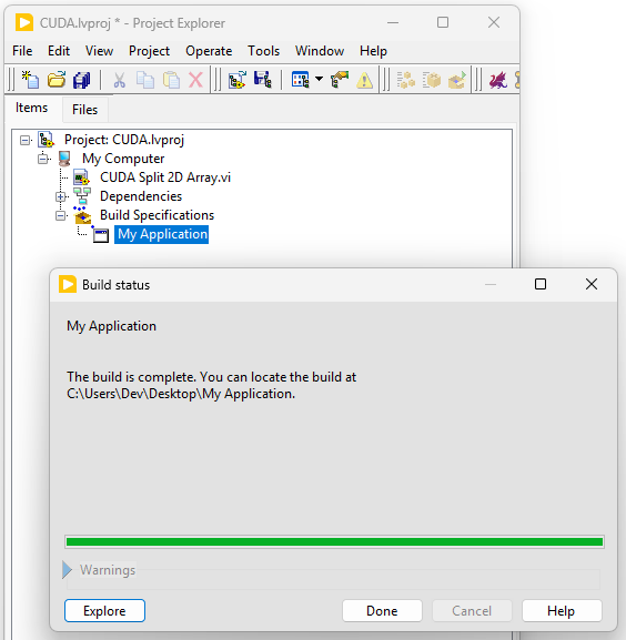 - The build of your LabVIEW executable will start. All you need to do is wait and then clickΒ Done.