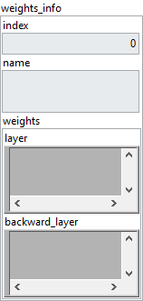 Gets the weights of the Bidirectional layer selected by the index. Type : polymorphic.