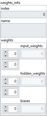 Gets the weights of the LSTM layer selected by the name. Type : polymorphic.