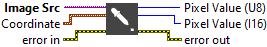 Pixel Value (I16) : integer, returns the specified pixel value. This output is used only for an 16-bit image.