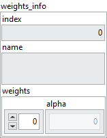Gets the weights of the PReLU2D selected by the name. Type : polymorphic.