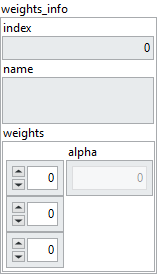 Gets the weights of the PReLU4D selected by the index. Type : polymorphic.