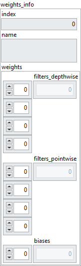 Gets the weights of the SeparableConv2D layer selected by the name. Type : polymorphic.