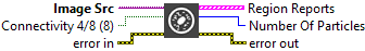 Returns the number of particles detected in a binary image and an array of reports containing the most commonly used particle measurements. Type : polymorphic.