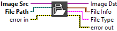 Read an image file. The file format can be a standard format (BMP, TIFF, JPEG/JPG, TIFF, GIF, PNG, PPM, PGM and WebP) or a nonstandard format known to the user. Type : polymorphic.