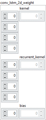 Defines the weights of the ConvLSTM2D layer selected by the index. Type : polymorphic.