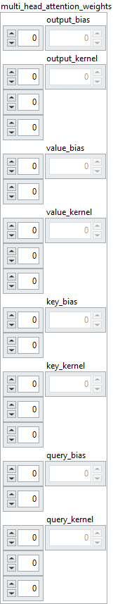 Defines the weights of the MultiHeadAttention layer selected by the index. Type : polymorphic.